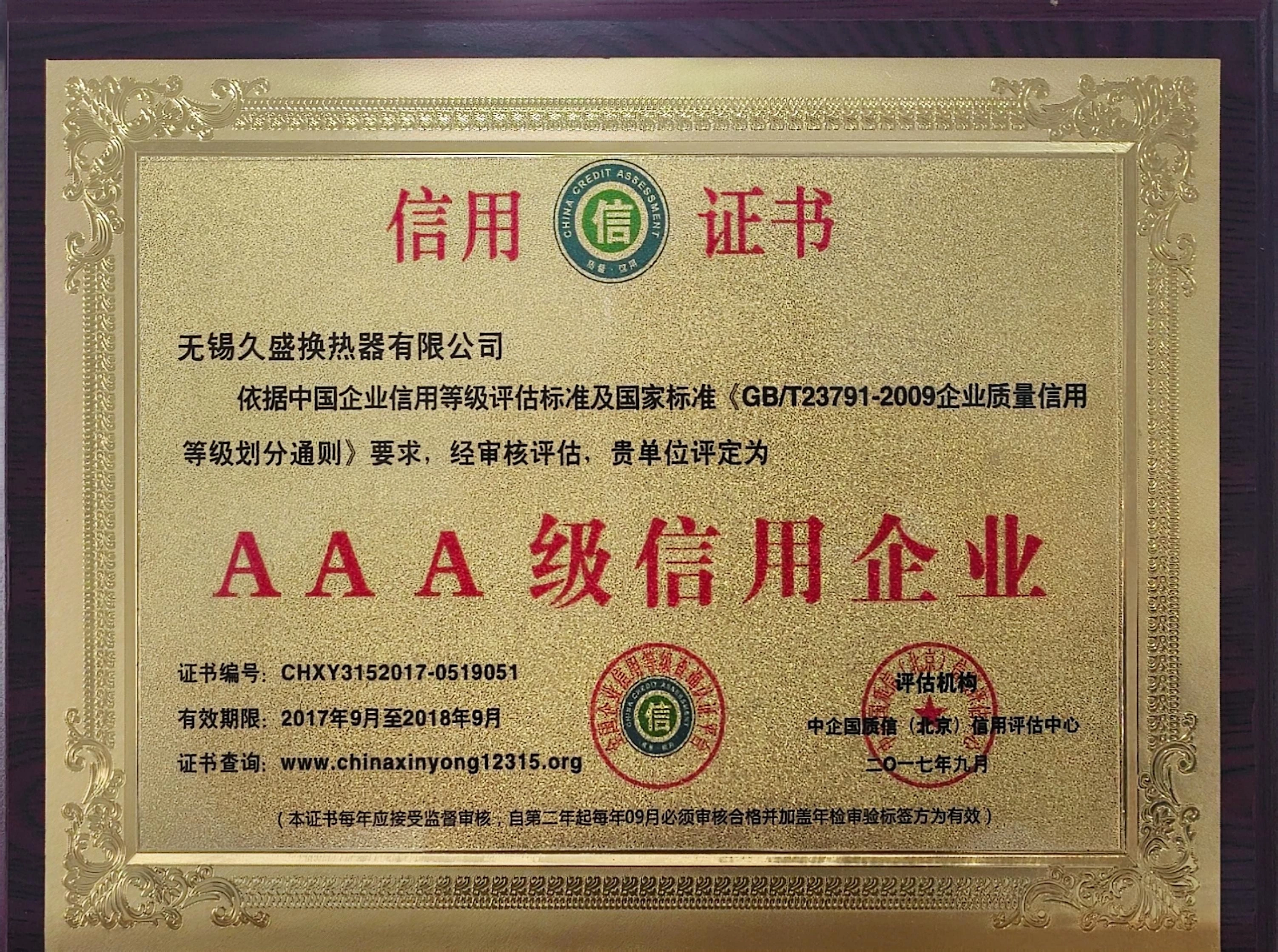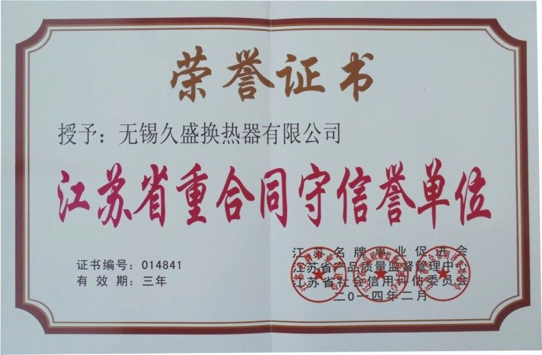 The company was honored as a "Jiangsu Province Contract-Honoring and Creditworthy Unit" for itsIntegrity in Business and strict contract compliance. Meanwhile, its core heat exchanger products were recognized as "Jiangsu Province High-Efficiency Energy-Saving Quality Products" for their excellent energy efficiency, further solidifying their competitiveness in the energy-saving and environmental protection sector.