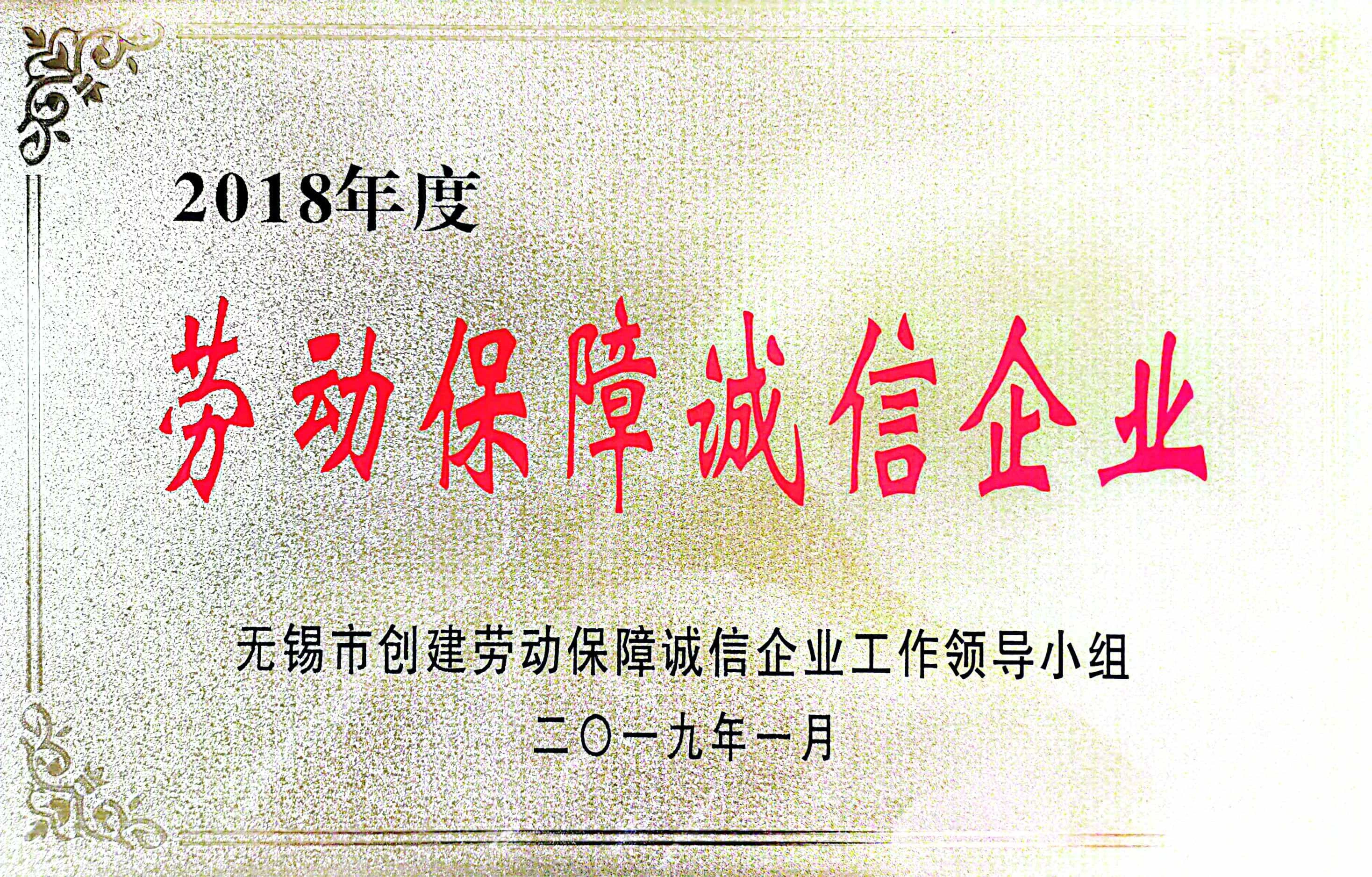 2018: Continuously Recognized as a "Jiangsu Province High-Tech Enterprise" and "Labor Security Integrity Enterprise"