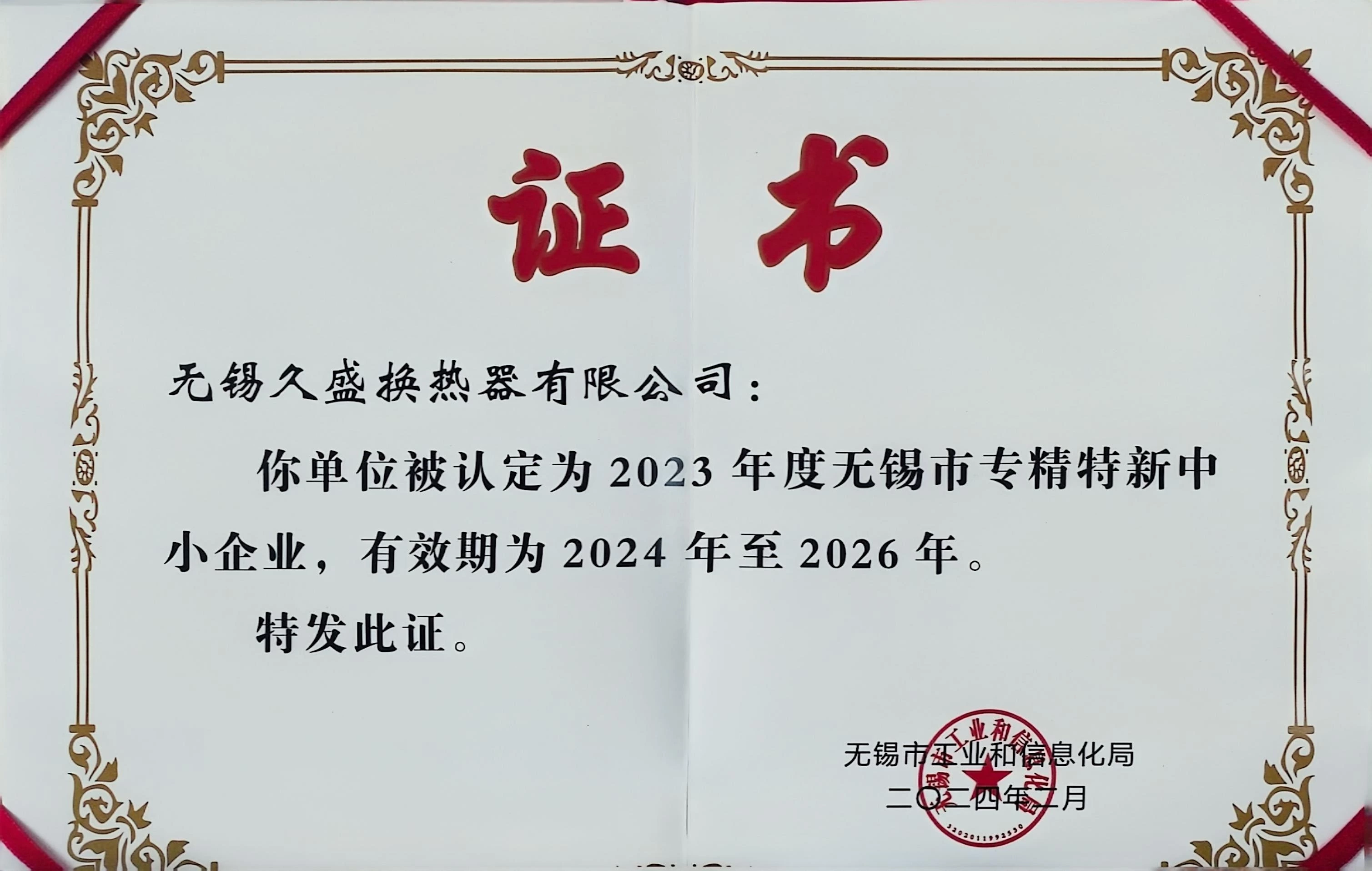 2024: Recognized as a "Wuxi Specialized, Refined, Distinctive, and Innovative SME"